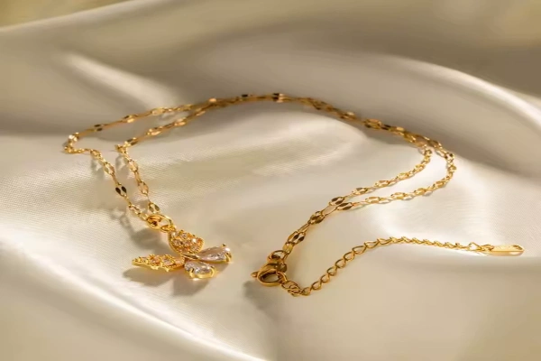 Let the MONARCH necklace transform your look with its enchanting butterfly-shaped pendant, meticulously crafted from pristine cubic zirconia for dazzling brilliance. Suspended from a delicate gold-plated chain, this piece captures light with every movement, blending ethereal beauty with timeless elegance. The hypoallergenic 18K gold plating ensures lasting shine and skin-friendly comfort, wear it as a choker, princess length, or layered with other chains.